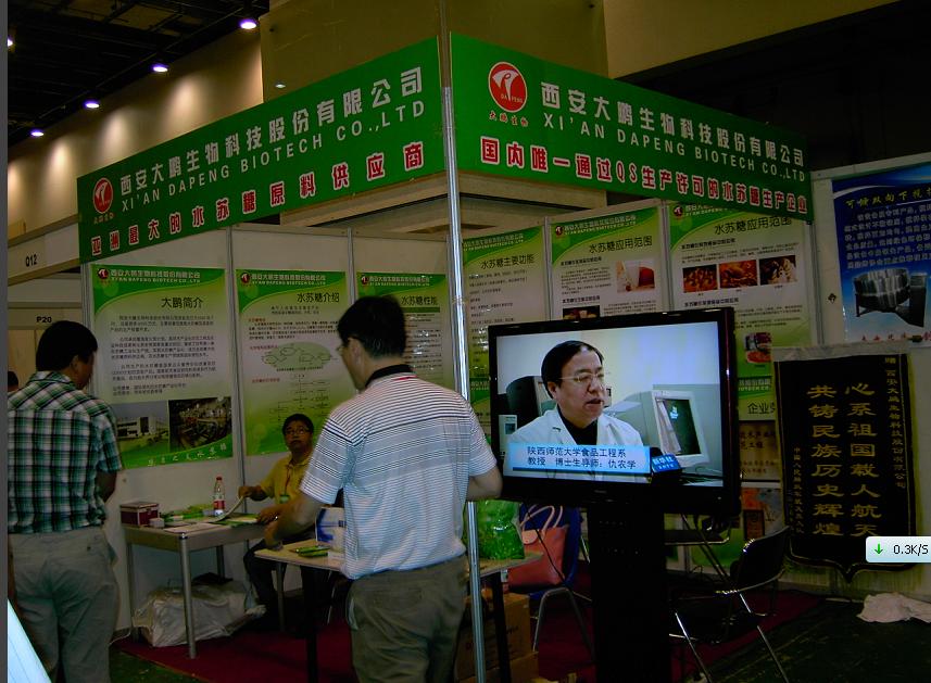 參加中韓貿(mào)洽會 走向國際大市場 參加青島食品配料展 尋求發(fā)展新商機(jī) 水蘇糖,我要認(rèn)識你! 大鵬生物參加2012中國國際輕工消費(fèi)品展覽會 恭賀大鵬生物榮獲中國輕工展覽科技創(chuàng)新獎 大鵬生物參加第五屆中國國際飲料工業(yè)科技展 第四屆中國營養(yǎng)產(chǎn)業(yè)高層論壇開幕 大鵬公司董事長與公眾營養(yǎng)健康中心主任于小冬在水蘇糖聯(lián)誼會上 高鵬董事長在第四屆中國營養(yǎng)產(chǎn)業(yè)高層論壇上 公眾營養(yǎng)改善OLIGO項目啟動儀式